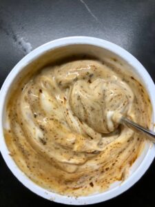 - Mix coconut sour cream with chicory root powder and coconut sugar.